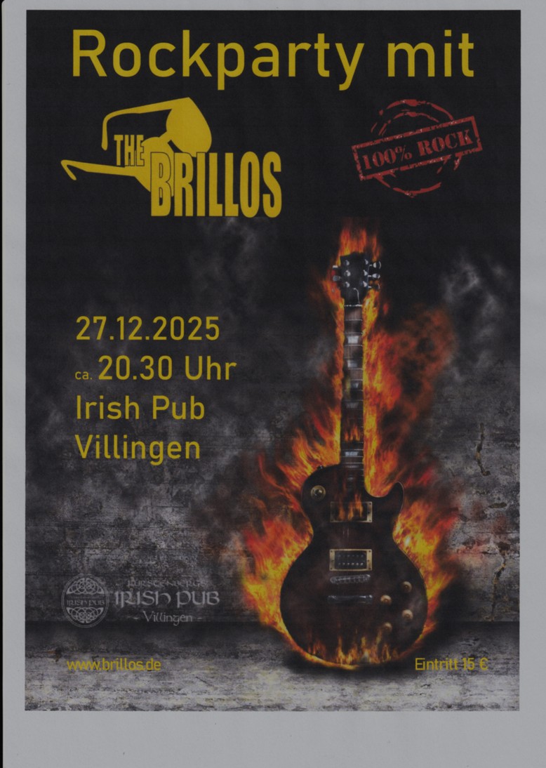 Folk, Pop, Rock – Handmade Music Events & Aktionen Event categories Alle Pubs Schwenningen Tuttlingen Villingen Reset Sammel Taxi die Party Band Datum: 21.03.2026 21:00 Pub: Tuttlingen 30 Jahre Irish Pub Villingen – The Buffalo Chips Datum: 17.01.2026 21:00 Pub: Villingen 30 Jahre Irish Pub Villingen – Krusty Moors Datum: 16.01.2026 21:00 Pub: Villingen B12 Live Datum: 05.01.2026 21:00 Pub: Tuttlingen AFTER-CHRISTMAS-ROCK mit Die BRILLOS Datum: 27.12.2025 20:30 Pub: Villingen Dörr Brüder Datum: 20.12.2025 21:00 Pub: Villingen Halloween mit Cargo Music Live Datum: 31.10.2025 21:00 Pub: Tuttlingen Lions Night 26.04.2025 Datum: 26.04.2025 21:00 Pub: Villingen Kneipentour Tuttlingen 05.04.2025 Datum: 05.04.2025 21:00 Pub: Tuttlingen B12 Live im Pub Datum: 05.01.2025 21:00 Pub: Tuttlingen